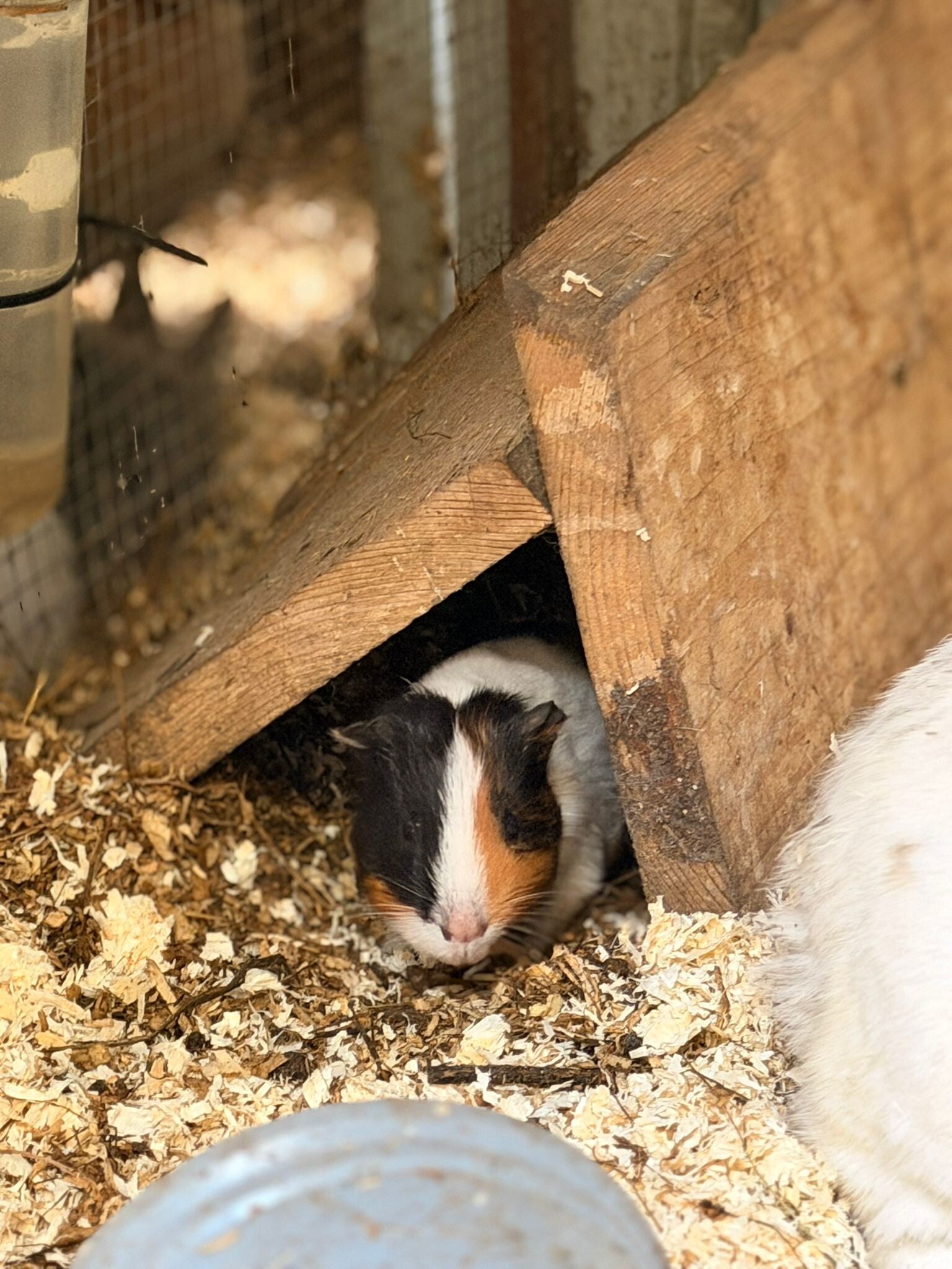 Het welzijn van onze dieren staat centraal in alles wat we doen. Onze kippen, konijnen, cavia's en parelhoenders genieten van onbeperkt kracht- en ruwvoer. Ze hebben een heel groot stuk om buiten te lopen, waar ze naar hartenlust kunnen scharrelen, graven en rennen. Deze ruime en natuurlijke omgeving draagt bij aan hun gezondheid en geluk, en dat proef je terug in de kwaliteit van onze eieren en het vlees van onze parelhoenders.